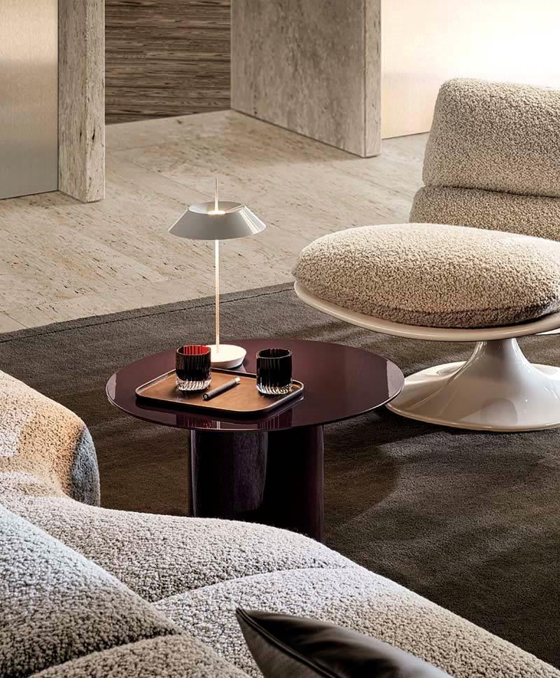 طاولة سطحها دائري الشكل مصنوعة بشكل كامل من الستانلس ستيل المقاوم لصدا بالوان مختلفة والقاعدة اسطوانية متينة توفر دعم متساوي لطاولة