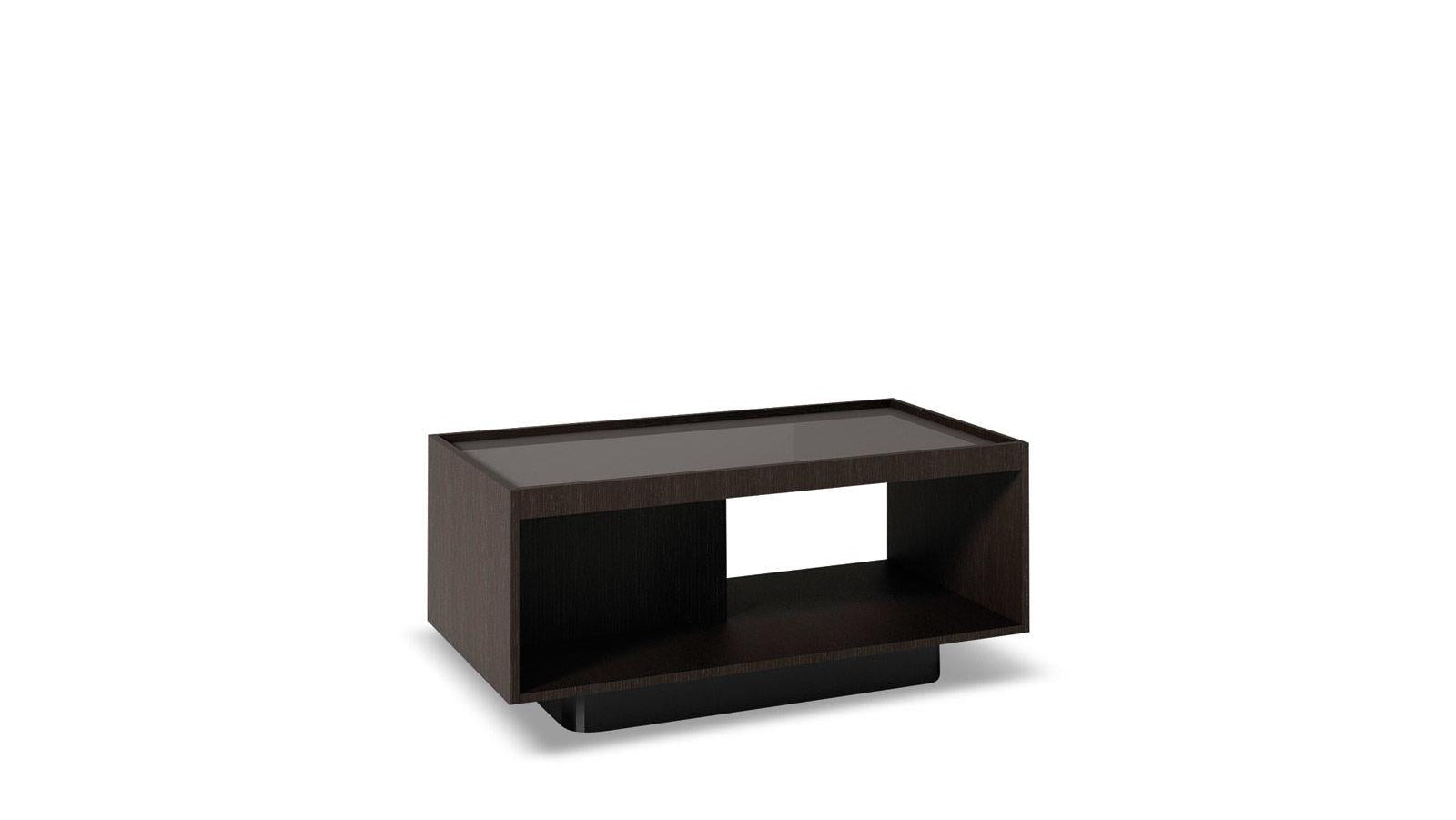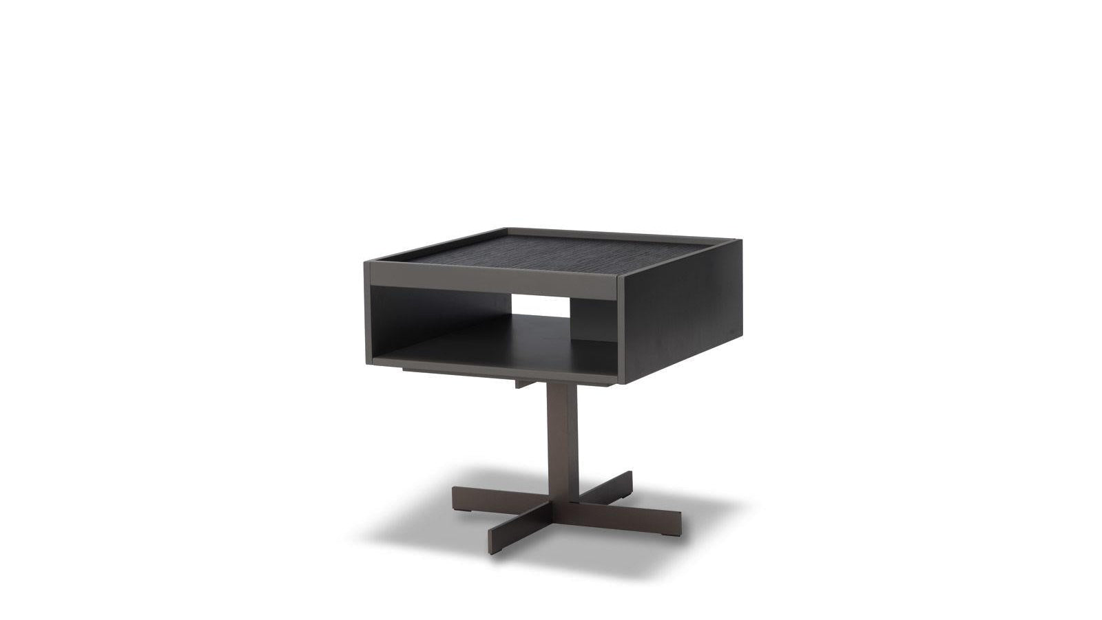 تصميم مربع بخطوط مستقيمة وهيكل من الخشب الصلب سطح الطاولة يحتوي على زجاج شفاف مثبت داخل الإطار العلوي القاعدة مصنوعة من ستانلس ستيل بلون تيتانيوم ، بتصميم متقاطع يوفّر ثباتًا بصريًا وماديًا تتضمّن الطاولة صينية إضافية سفلية بنفس لون الخشب ومقاس الطاولة