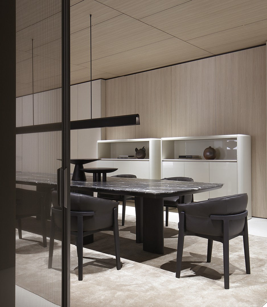 طاولة مستطيلة بتصميم أنيق بسطح أملس مصنوع من رخام طبيعي إيطالي فاخر مع خيارات متعددة من انواع الرخام حسب اختيارك وقاعدة قوية لضمان ثبات واستقرار عالي بارجل مستطيلة متداخلة متينة من الستانلس ستيل المقاوم للصدأ بطلاء معدني بلون الذهبي الشمبانيا