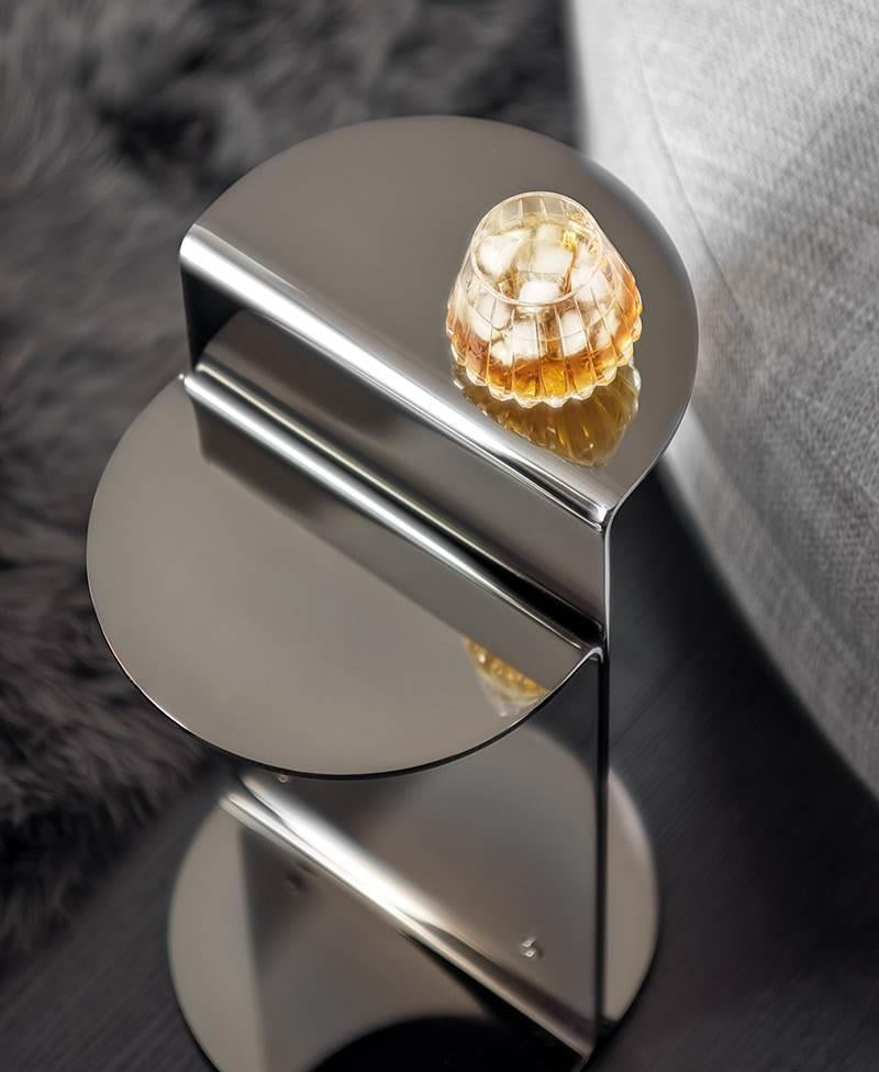طاولة بتصميم فريد مصنوعة بالكامل من الستانلس ستيل المقاوم لصدا بلونين الذهبي والاسود النحاسي