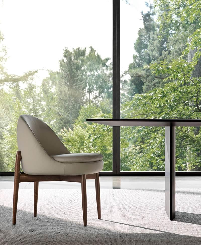 كرسي أنيق مصنوع من الخشب الطبيعي متعدد الطبقات من الدرجةE1 بتنجيد من الكتان العالي الجودة مبطن بإسفنج عالي الكثافة او من الجلد بألياف دقيقة عالي الجودة القاعدة متينة من مواد عالية الجودة و ارجل الكرسي مصنوعة من خشب الدردار الامريكي الصلب الطبيعي فاخر يجمع بين الراحة والمتانة