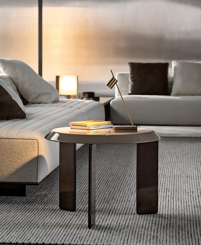 طاولة بقياسين تتميّز بسطح دائري واسع من الطلاء او الرخام الايطالي الطبيعي كما يمكنك اختيار نوع السطح و مدعومة بأرجل مستقلة من الستانلس ستيل المقاوم لصدا بالون النحاسي الذهبي مصنوعة من مواد فاخرة تجمع بين الجودة العالية والتفاصيل الدقيقة