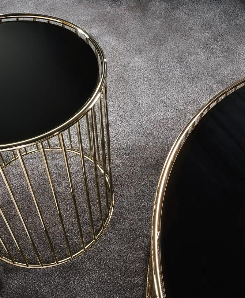 طاولة جانية بقياسين السطح مستدير مصنوع من الزجاج بعدة الوان او من الخشب القاعدة مصنوعة من الستانلس ستيل المقاوم لصدأ التصميم مفتوح من الجوانب باستخدام قضبان معدنية