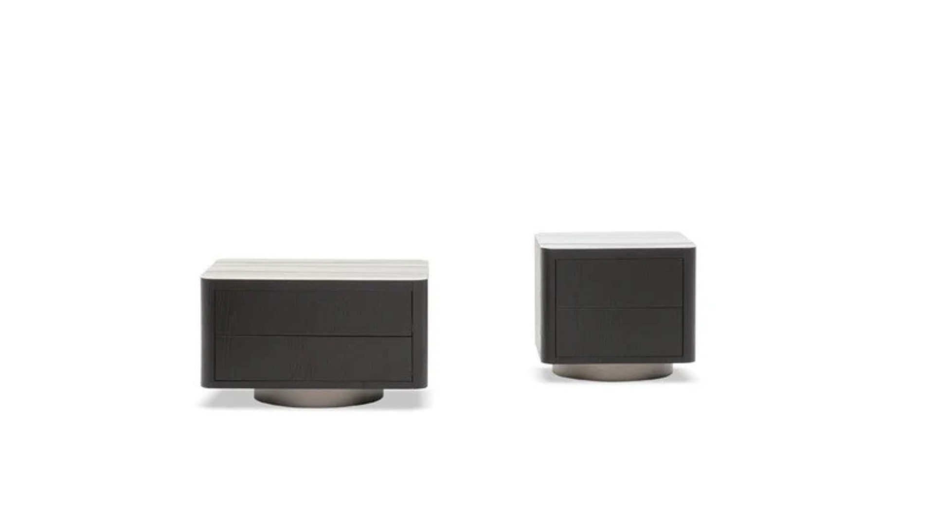 تصميم مدمج بحواف منحنية وهيكل من الخشب الصلب متعدد الطبقات وسطح رخام طبيعي مزودة بدرجين مدمجين بسطح مستوٍ القاعدة دائرية منخفضة من الستانلس ستيل المقاوم لصداء بلون التيتانيوم المصقول مصممة بشكل ثابت وتدعم الجزء العلوي بدون أرجل جانبية