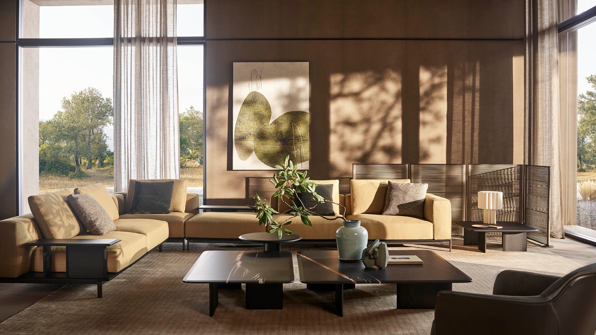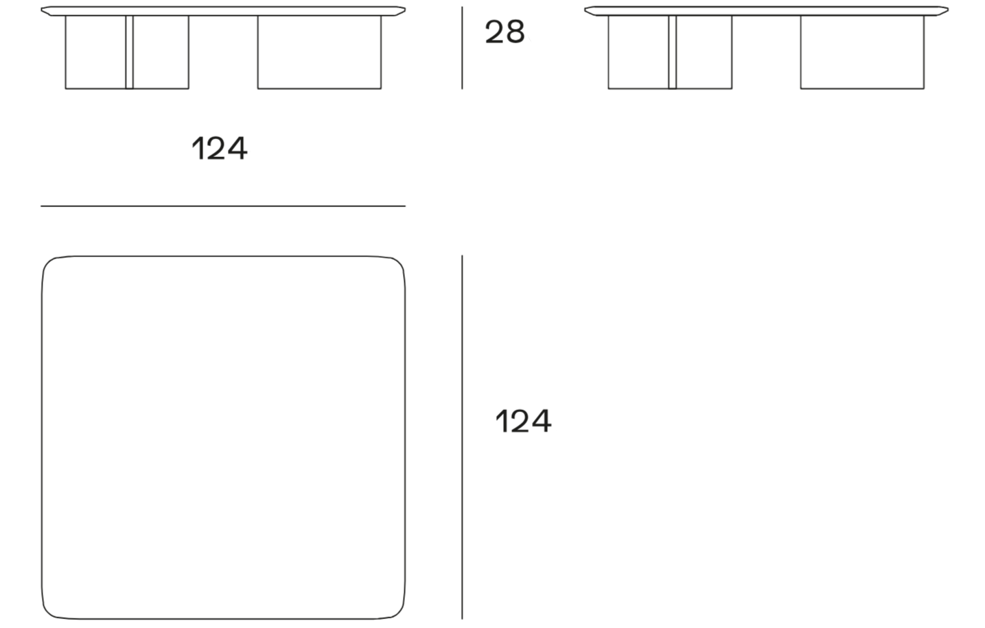 و طاولة قهوة بشكل مربع بسطح رخام إيطالي طبيعي متوفر بعدة خيارات من انواع الرخام الفاخر او خشب البلوط الطبيعي وقاعدة من خشب طبيعي أسود بأرجل متقاطعة عريضة