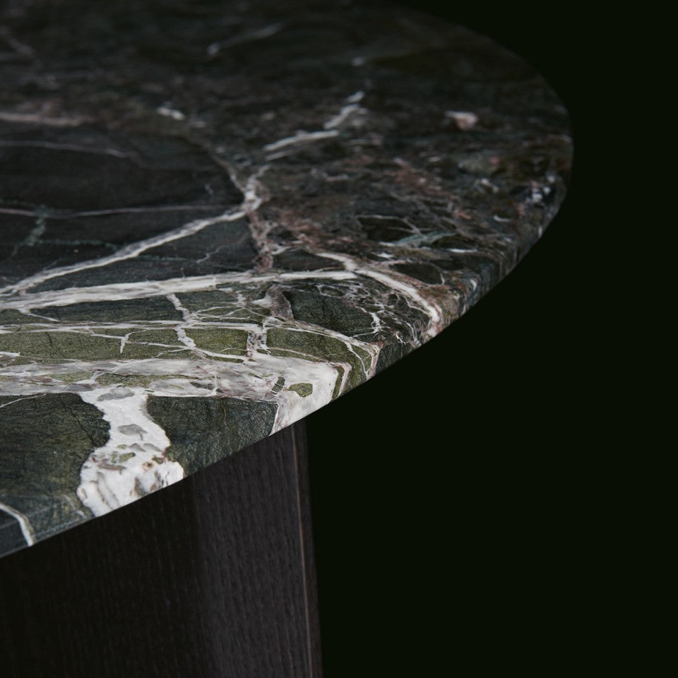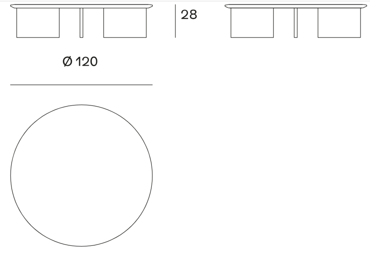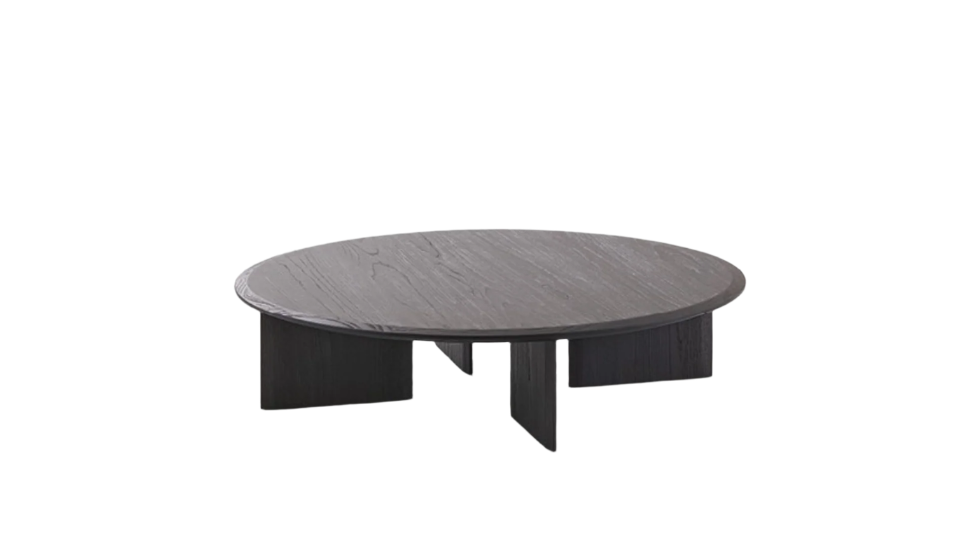 طاولة قهوة بشكل دائري كبير بسطح رخام إيطالي طبيعي متوفر بعدة خيارات من انواع الرخام الفاخر او خشب البلوط الطبيعي وقاعدة من خشب طبيعي أسود بأرجل متقاطعة عريضة