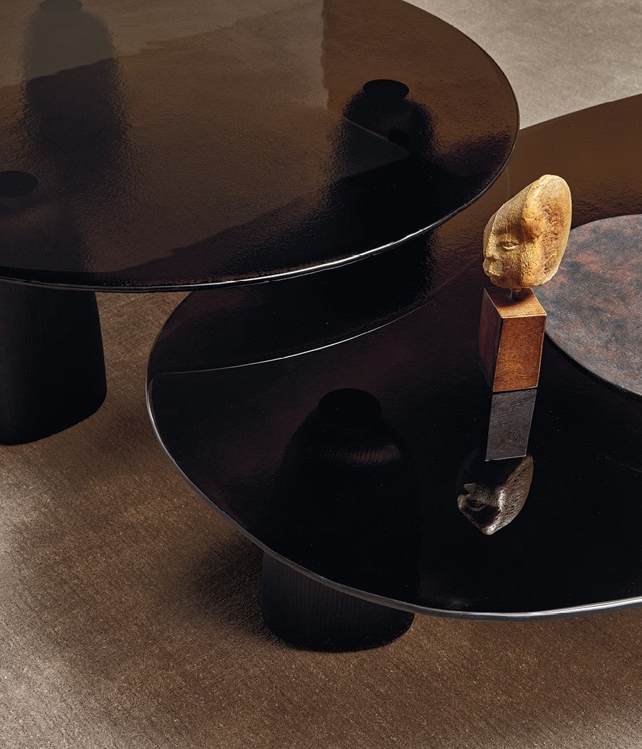 طاولات بتصاميم مختلفة نوع السطح من الرخام الايطالي الطبيعي او من خشب البلوط الاسود الأرجل جميعها أسطوانية سميكة مصنوعة من خشب الدردار الاسود طبيعي متعدد الطبقات
