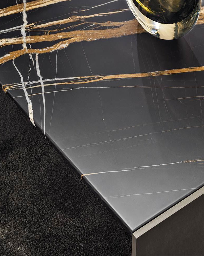 طاولة بقياسين السطح مصنوع من الرخام الايطالي الطبيعي بخيارات متعددة حسب اختيارك والقاعدة مصنوعة من استانلس ستيل المقاوم لصدا مصممة بدقة مما يمنح الطاولة ثباتا ومتانة واناقة بلون برونزي مصقول
